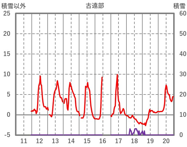 | 日 | 時 | 気温 | 降水 | 風向/風速 | 日照 | 積雪 | 降雪 |