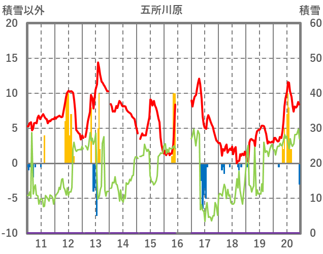 | 日 | 時 | 気温 | 降水 | 風向/風速 | 日照 | 積雪 | 降雪 |