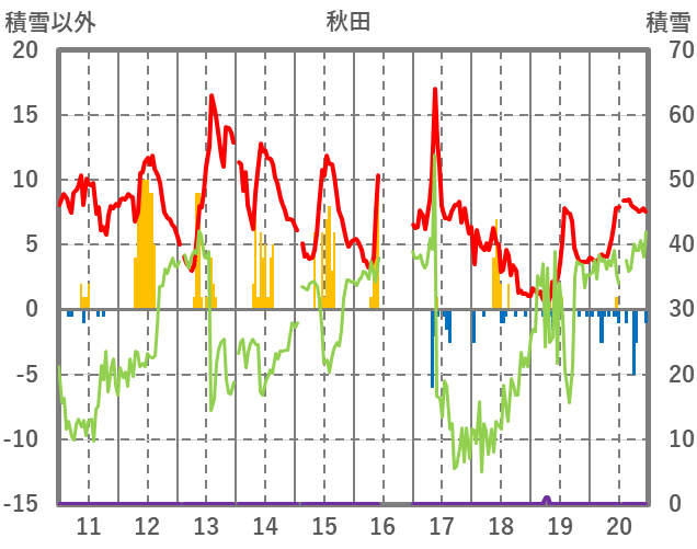 | 日 | 時 | 気温 | 降水 | 風向/風速 | 日照 | 積雪 | 降雪 |