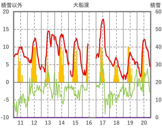 | 日 | 時 | 気温 | 降水 | 風向/風速 | 日照 | 積雪 | 降雪 |