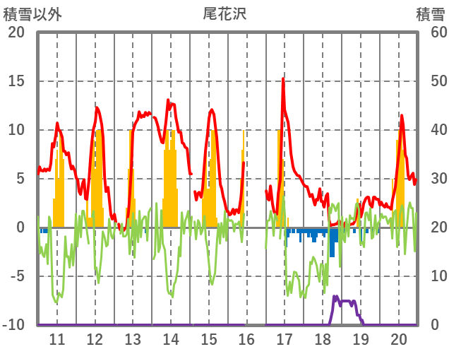| 日 | 時 | 気温 | 降水 | 風向/風速 | 日照 | 積雪 | 降雪 |
