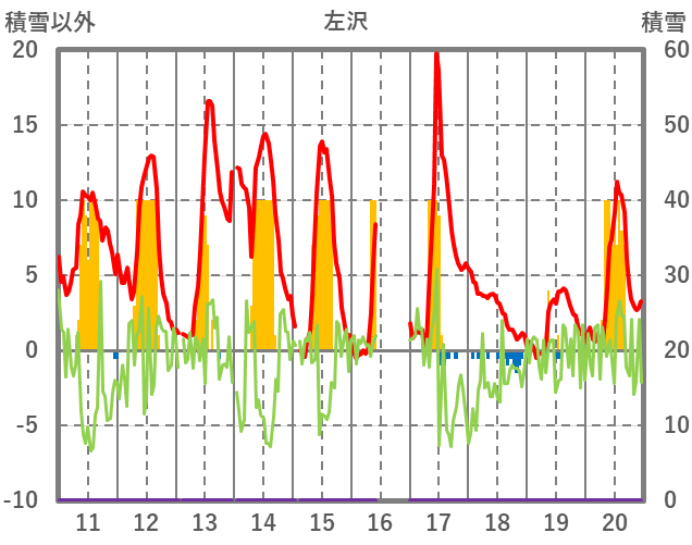 | 日 | 時 | 気温 | 降水 | 風向/風速 | 日照 | 積雪 | 降雪 |