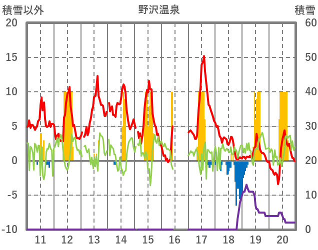 | 日 | 時 | 気温 | 降水 | 風向/風速 | 日照 | 積雪 | 降雪 |