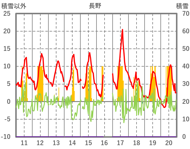 | 日 | 時 | 気温 | 降水 | 風向/風速 | 日照 | 積雪 | 降雪 |