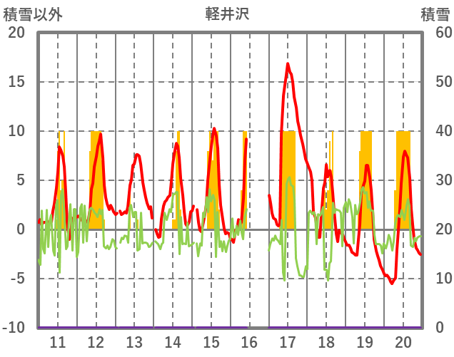 | 日 | 時 | 気温 | 降水 | 風向/風速 | 日照 | 積雪 | 降雪 |