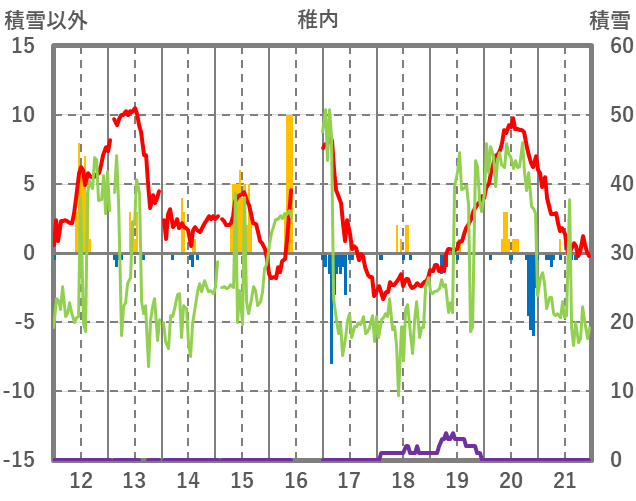 | 日 | 時 | 気温 | 降水 | 風向/風速 | 日照 | 積雪 | 降雪 |