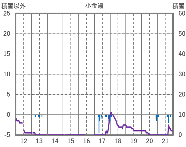 | 日 | 時 | 気温 | 降水 | 風向/風速 | 日照 | 積雪 | 降雪 |