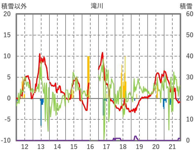 | 日 | 時 | 気温 | 降水 | 風向/風速 | 日照 | 積雪 | 降雪 |
