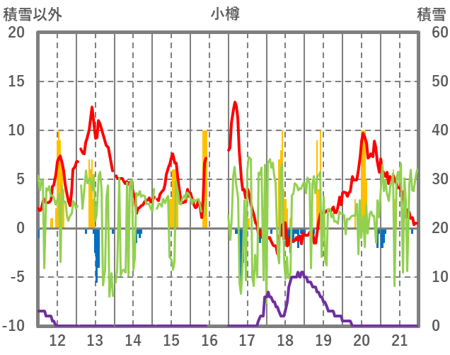 | 日 | 時 | 気温 | 降水 | 風向/風速 | 日照 | 積雪 | 降雪 |