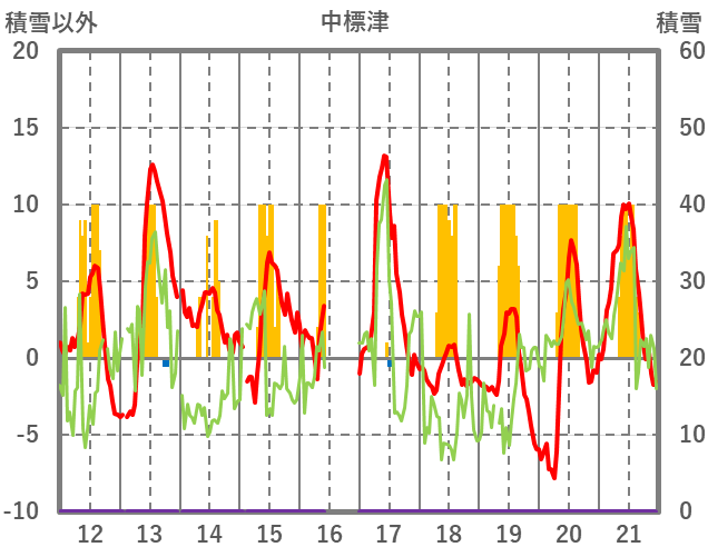 | 日 | 時 | 気温 | 降水 | 風向/風速 | 日照 | 積雪 | 降雪 |