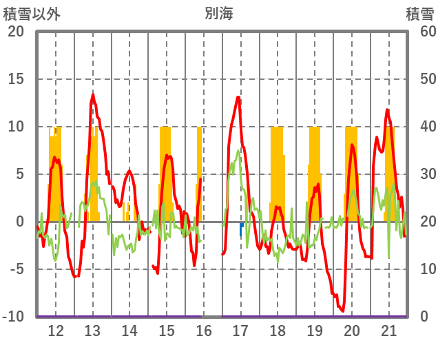 | 日 | 時 | 気温 | 降水 | 風向/風速 | 日照 | 積雪 | 降雪 |