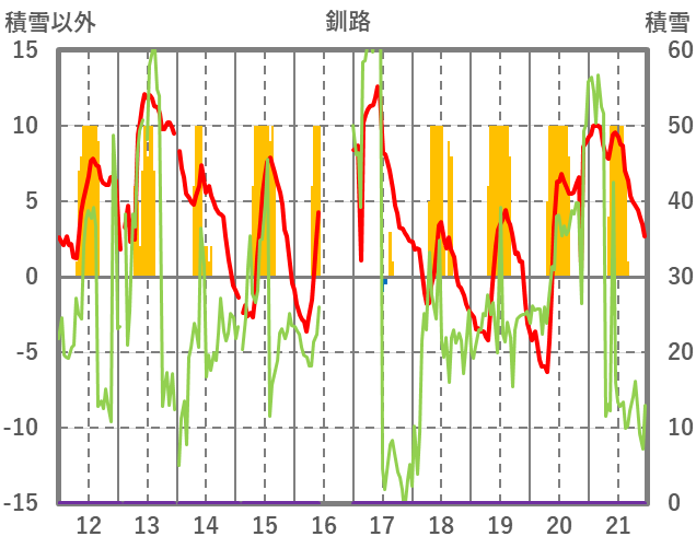 | 日 | 時 | 気温 | 降水 | 風向/風速 | 日照 | 積雪 | 降雪 |