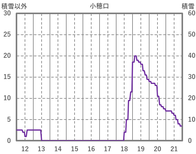 | 日 | 時 | 気温 | 降水 | 風向/風速 | 日照 | 積雪 | 降雪 |