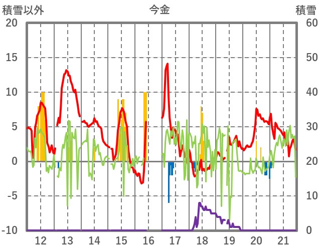 | 日 | 時 | 気温 | 降水 | 風向/風速 | 日照 | 積雪 | 降雪 |