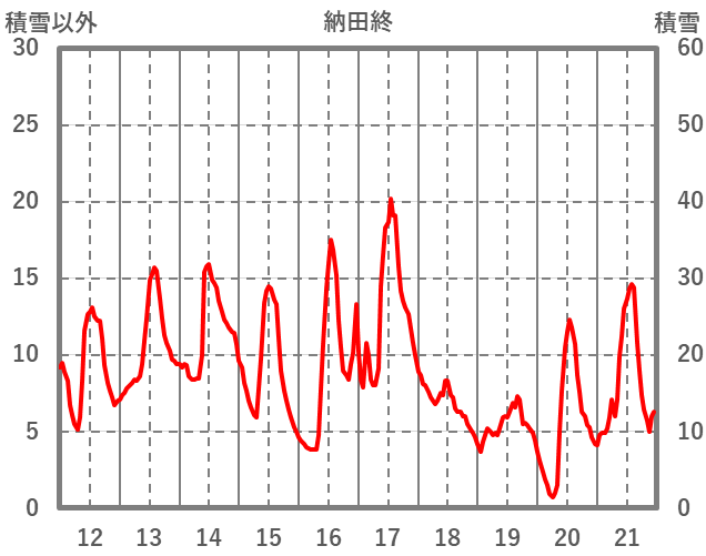 | 日 | 時 | 気温 | 降水 | 風向/風速 | 日照 | 積雪 | 降雪 |