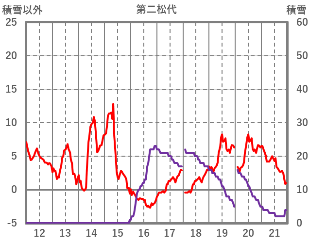 | 日 | 時 | 気温 | 降水 | 風向/風速 | 日照 | 積雪 | 降雪 |