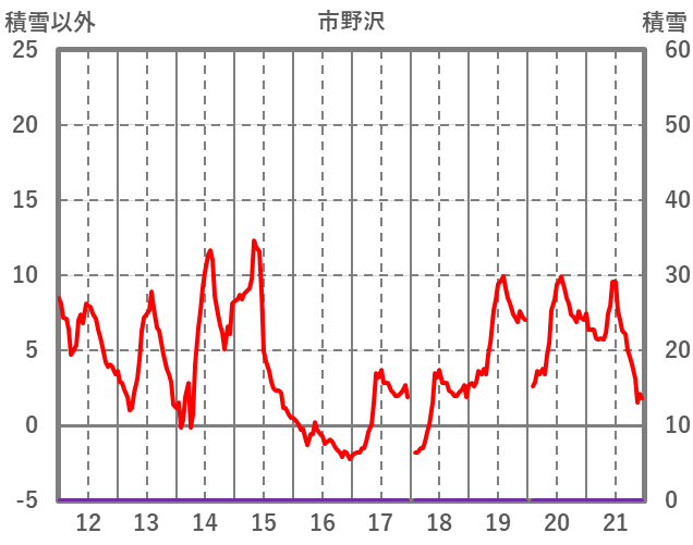 | 日 | 時 | 気温 | 降水 | 風向/風速 | 日照 | 積雪 | 降雪 |