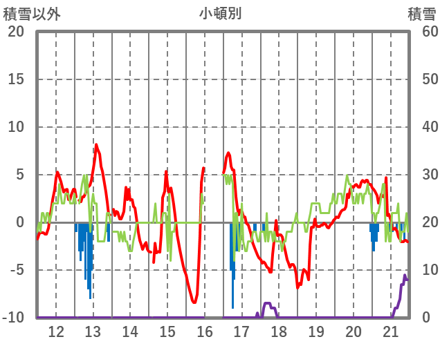 | 日 | 時 | 気温 | 降水 | 風向/風速 | 日照 | 積雪 | 降雪 |
