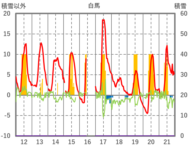 | 日 | 時 | 気温 | 降水 | 風向/風速 | 日照 | 積雪 | 降雪 |