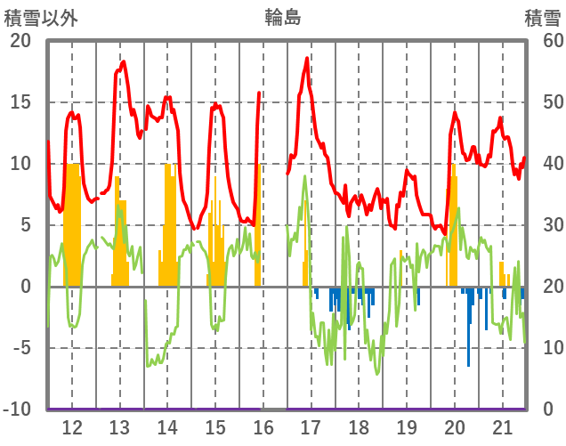 | 日 | 時 | 気温 | 降水 | 風向/風速 | 日照 | 積雪 | 降雪 |