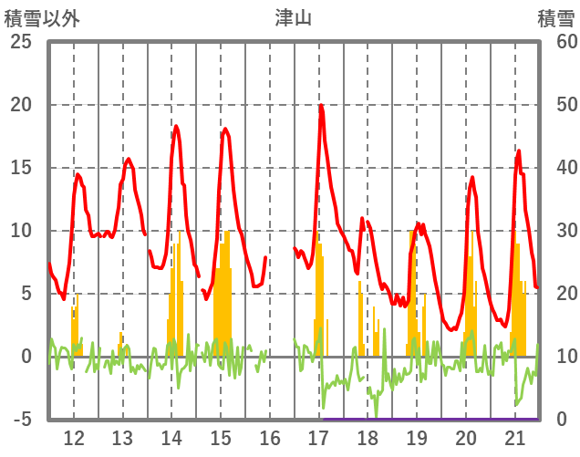 | 日 | 時 | 気温 | 降水 | 風向/風速 | 日照 | 積雪 | 降雪 |