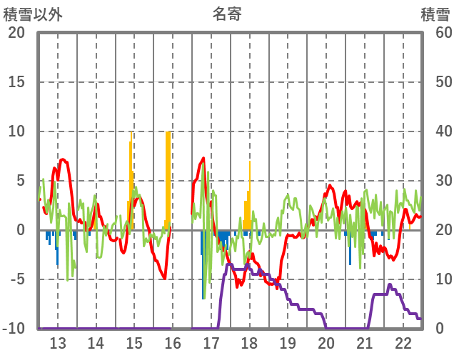| 日 | 時 | 気温 | 降水 | 風向/風速 | 日照 | 積雪 | 降雪 |