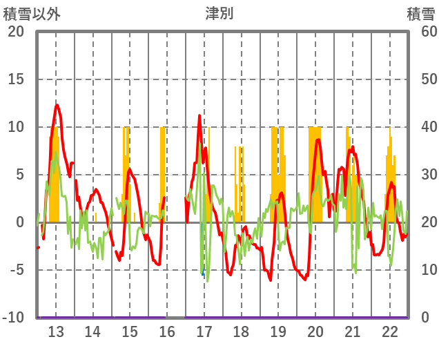 | 日 | 時 | 気温 | 降水 | 風向/風速 | 日照 | 積雪 | 降雪 |