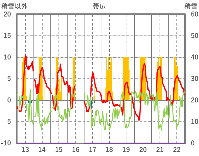 | 日 | 時 | 気温 | 降水 | 風向/風速 | 日照 | 積雪 | 降雪 |
