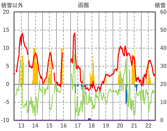 | 日 | 時 | 気温 | 降水 | 風向/風速 | 日照 | 積雪 | 降雪 |