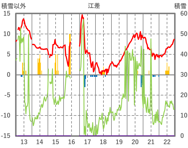 | 日 | 時 | 気温 | 降水 | 風向/風速 | 日照 | 積雪 | 降雪 |