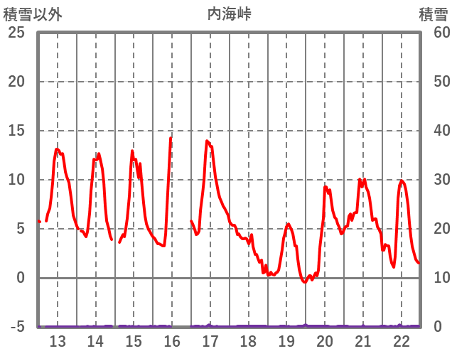 | 日 | 時 | 気温 | 降水 | 風向/風速 | 日照 | 積雪 | 降雪 |