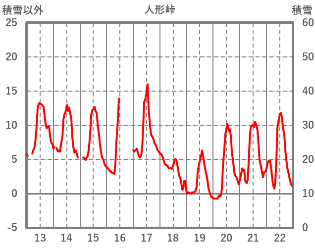 | 日 | 時 | 気温 | 降水 | 風向/風速 | 日照 | 積雪 | 降雪 |