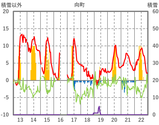 | 日 | 時 | 気温 | 降水 | 風向/風速 | 日照 | 積雪 | 降雪 |