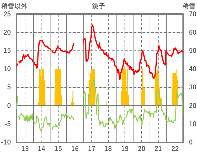 | 日 | 時 | 気温 | 降水 | 風向/風速 | 日照 | 積雪 | 降雪 |
