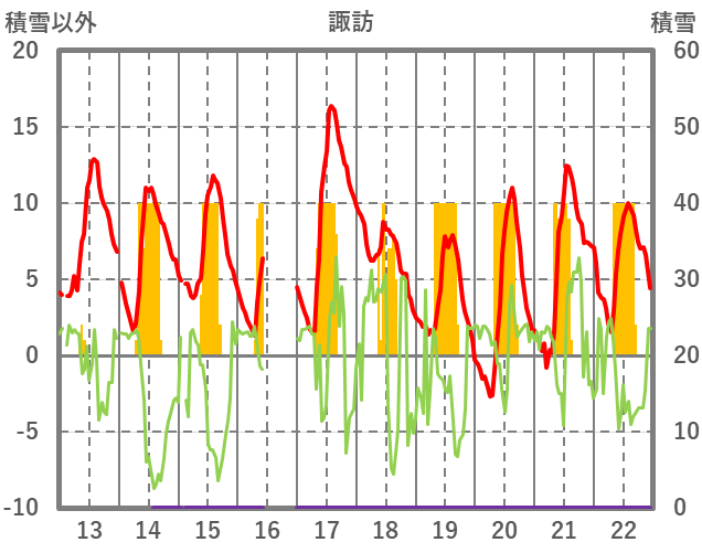 | 日 | 時 | 気温 | 降水 | 風向/風速 | 日照 | 積雪 | 降雪 |
