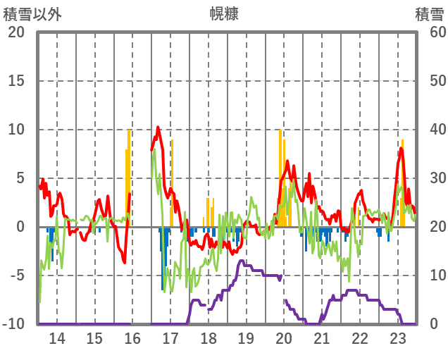 | 日 | 時 | 気温 | 降水 | 風向/風速 | 日照 | 積雪 | 降雪 |