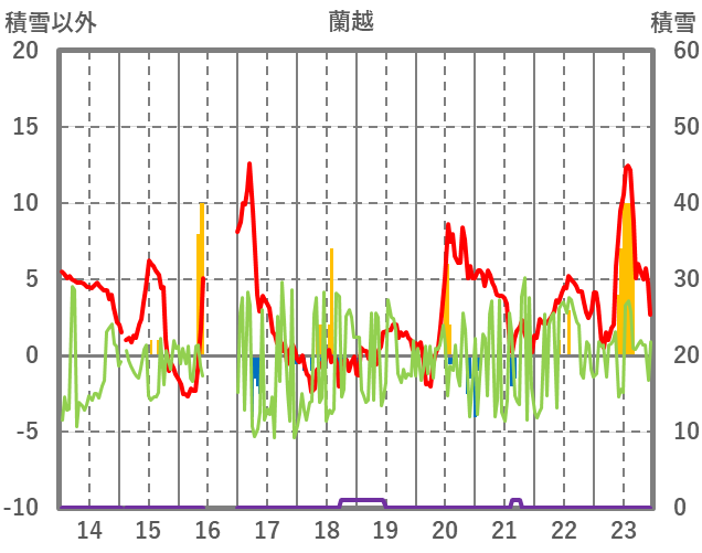 | 日 | 時 | 気温 | 降水 | 風向/風速 | 日照 | 積雪 | 降雪 |