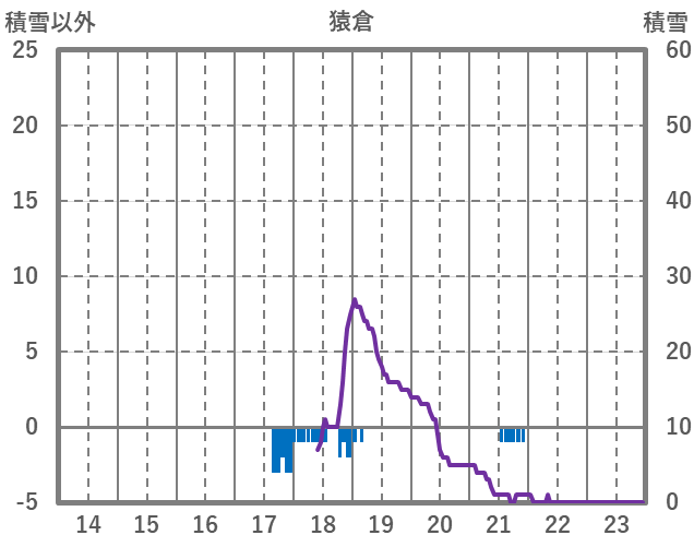 | 日 | 時 | 気温 | 降水 | 風向/風速 | 日照 | 積雪 | 降雪 |