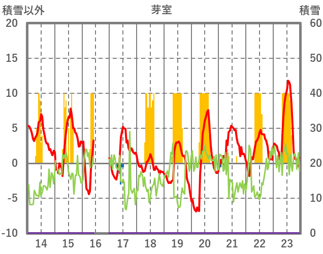 | 日 | 時 | 気温 | 降水 | 風向/風速 | 日照 | 積雪 | 降雪 |