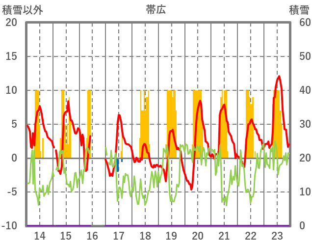 | 日 | 時 | 気温 | 降水 | 風向/風速 | 日照 | 積雪 | 降雪 |