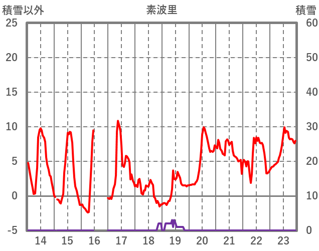 | 日 | 時 | 気温 | 降水 | 風向/風速 | 日照 | 積雪 | 降雪 |