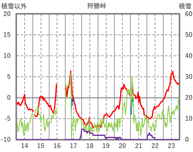 | 日 | 時 | 気温 | 降水 | 風向/風速 | 日照 | 積雪 | 降雪 |
