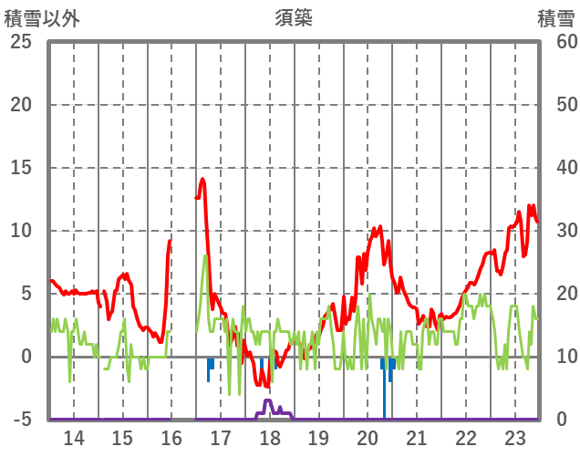 | 日 | 時 | 気温 | 降水 | 風向/風速 | 日照 | 積雪 | 降雪 |