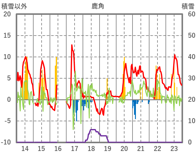 | 日 | 時 | 気温 | 降水 | 風向/風速 | 日照 | 積雪 | 降雪 |