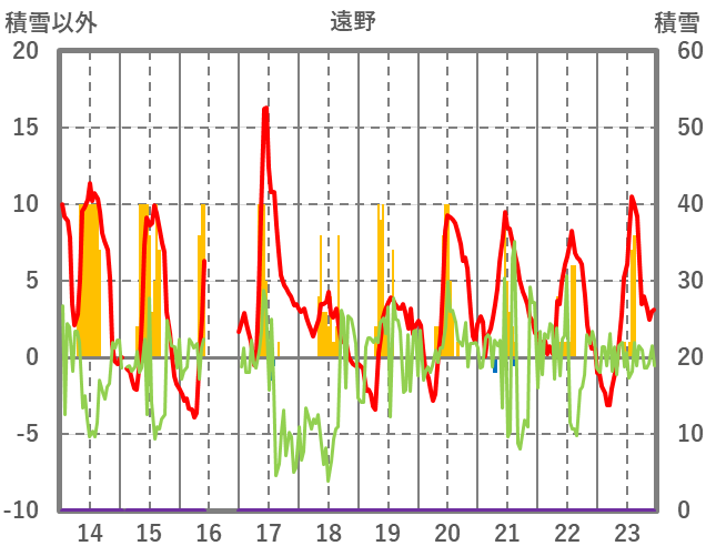 | 日 | 時 | 気温 | 降水 | 風向/風速 | 日照 | 積雪 | 降雪 |