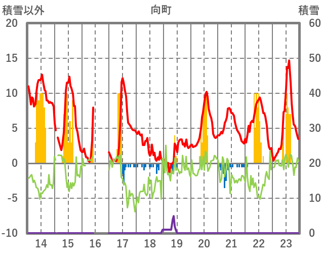 | 日 | 時 | 気温 | 降水 | 風向/風速 | 日照 | 積雪 | 降雪 |