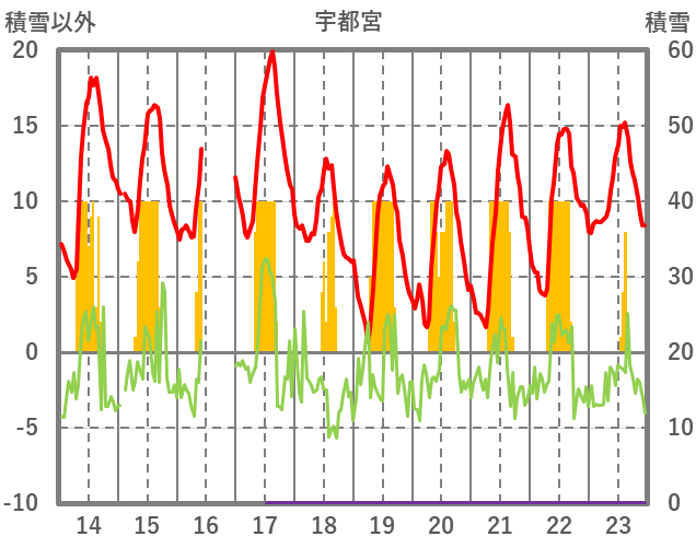 | 日 | 時 | 気温 | 降水 | 風向/風速 | 日照 | 積雪 | 降雪 |