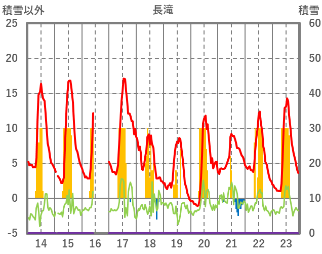 | 日 | 時 | 気温 | 降水 | 風向/風速 | 日照 | 積雪 | 降雪 |