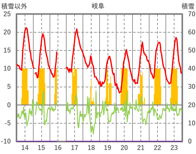 | 日 | 時 | 気温 | 降水 | 風向/風速 | 日照 | 積雪 | 降雪 |