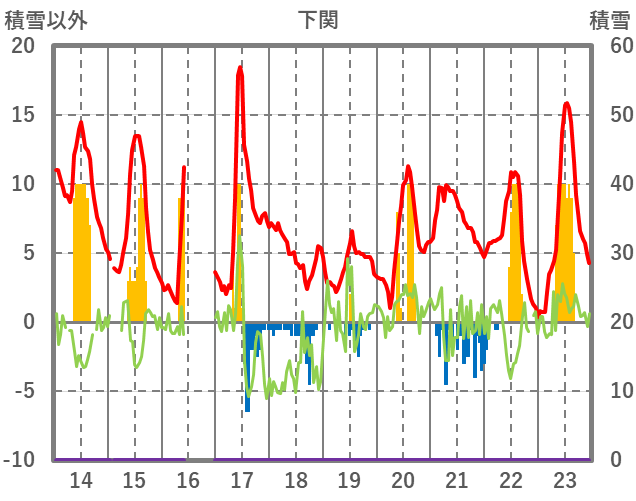 | 日 | 時 | 気温 | 降水 | 風向/風速 | 日照 | 積雪 | 降雪 |